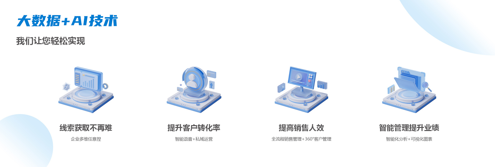 智能获客:大数据+人工智能,自动筛选出精准客户,降低获客成本,提高获客效率。